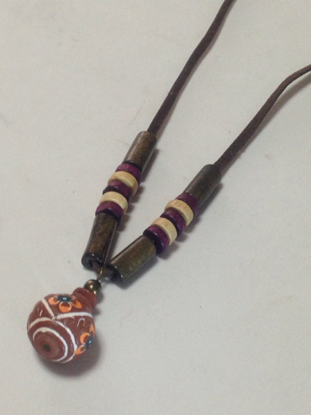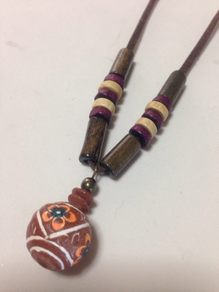 一点物、木彫りの可愛いペンダントネックレスです、トップのサイズは直径13ミリ、長さはフリーです★ 送料は120です