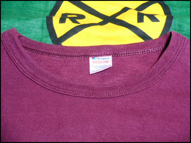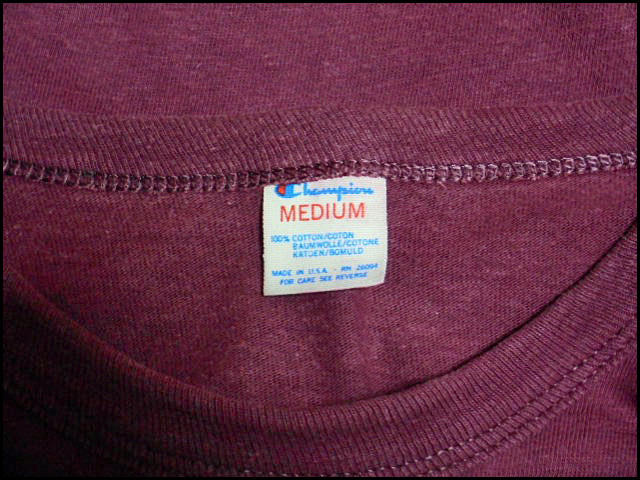 ブランドは「CHAMPION(チャンピオン)」、生産国はMade in USA(アメリカ製)、タグはコットン100%表記のトリコロールタグ(トリコタグ)が付いています。