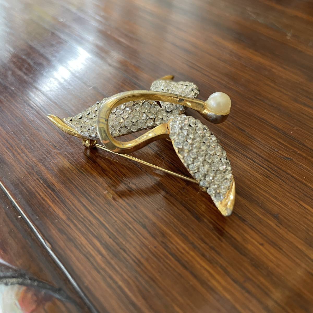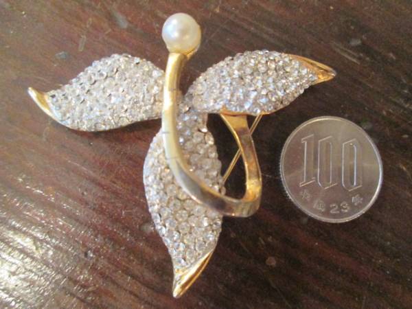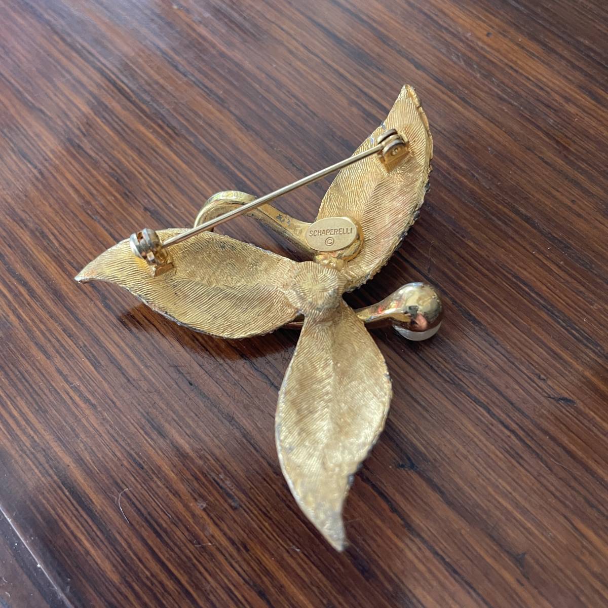 ★アメリカで買い付けましたビンテージのブローチです。デザイナーはミリアムハスケルと同時期の「エルザ スキャパレリ」です。100円玉はサイズ比較の為に写してます。金メッキ部分に経年による剥がれがります(写真参照)。使用感はありますがとても上品で希少な逸品です。ビンテージ品アンティーク品にご理解ある方よろしくお願いします。