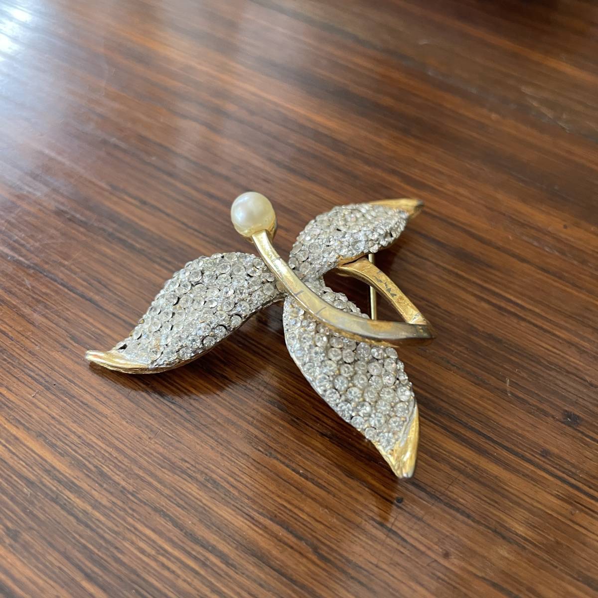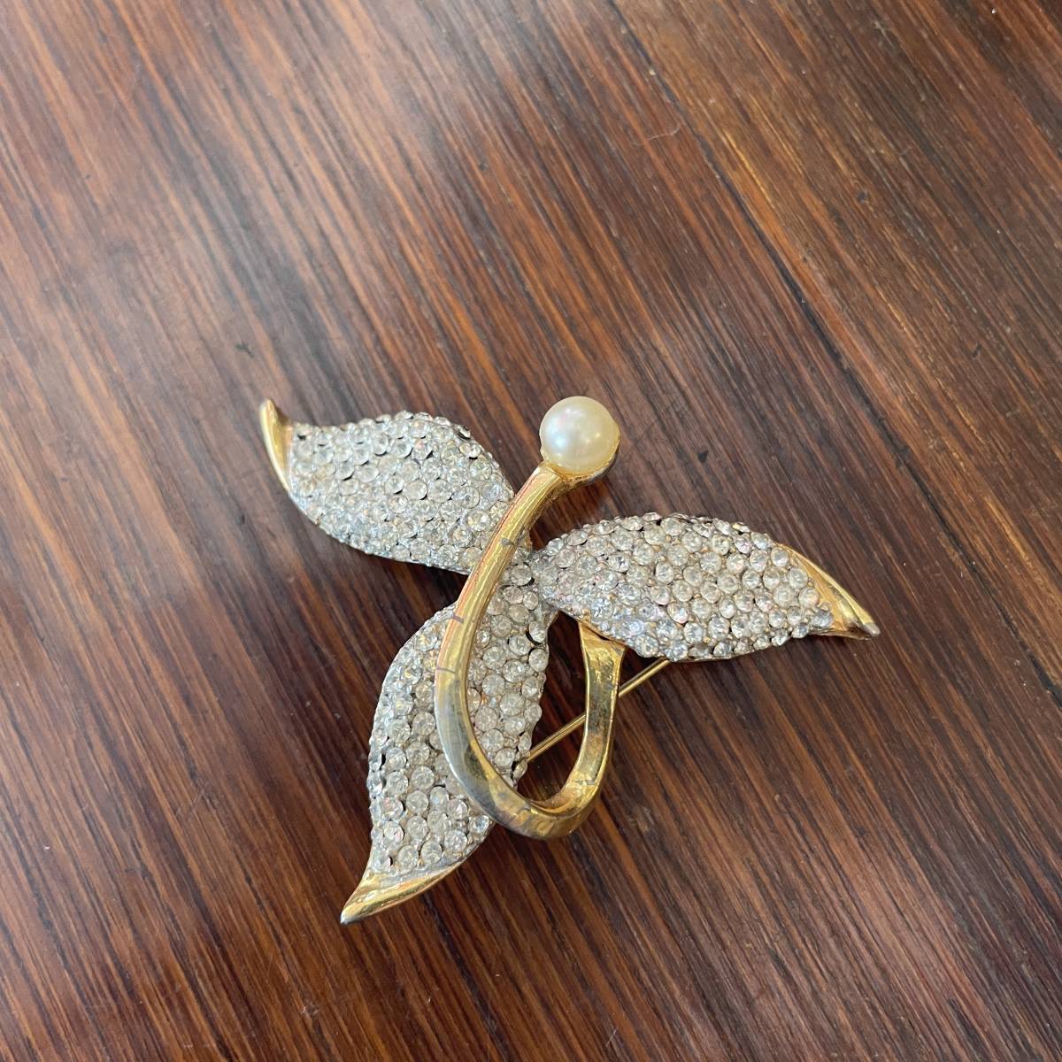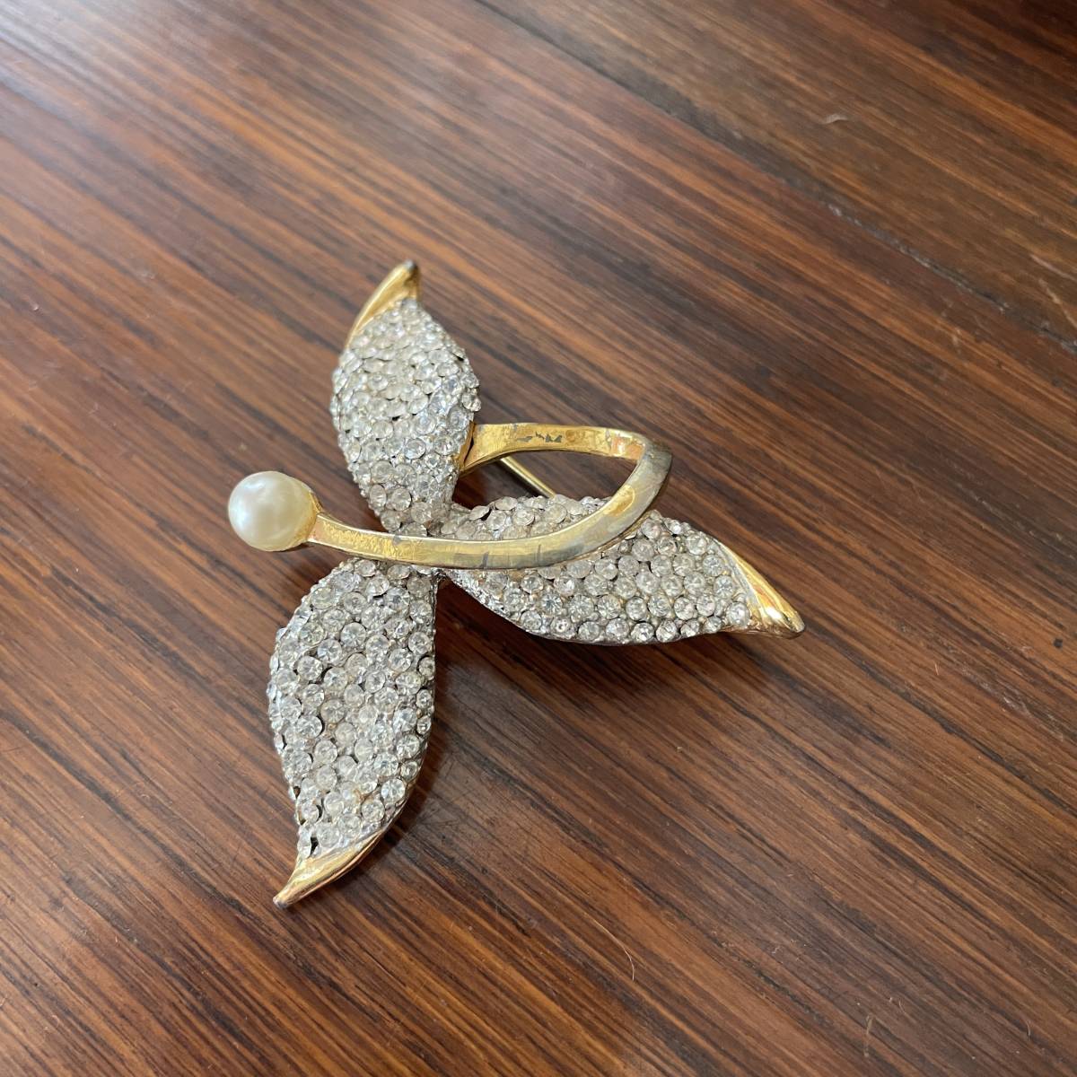 ★アメリカで買い付けましたビンテージのブローチです。デザイナーはミリアムハスケルと同時期の「エルザ スキャパレリ」です。100円玉はサイズ比較の為に写してます。金メッキ部分に経年による剥がれがります(写真参照)。使用感はありますがとても上品で希少な逸品です。ビンテージ品アンティーク品にご理解ある方よろしくお願いします。