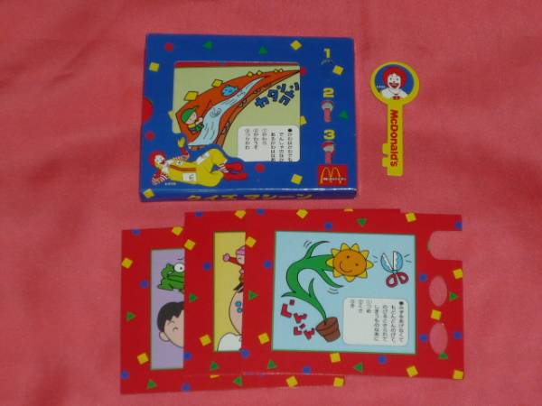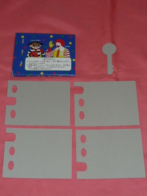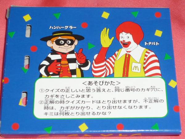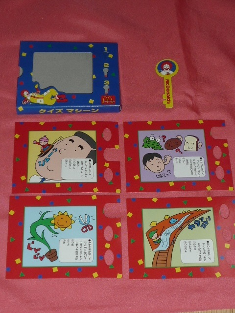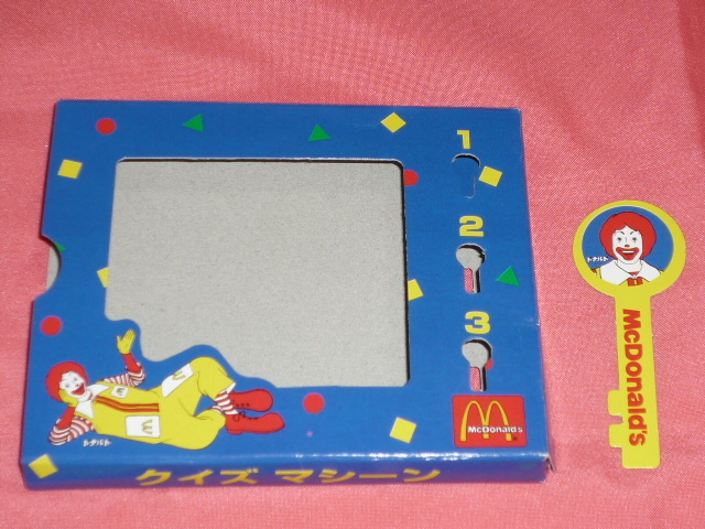 ☆商品説明☆ ご覧いただきありがとうございます^^ マクドナルドキャラクターの非売品の紙おもちゃ クイズマシーンです。マクドナルドキャラクターの絵柄でと~ってもかわいいですよ^^ 大きさはタテ 約8.5cm、ヨコ 約10.5cmです。たいへん古いものですがコレクション用として袋に入れたまま大切に保管していましたので新品、未使用できれいな状態ですが家庭での保管ですのでご理解いただける方のご入札をお願い致します。 ☆発送方法☆ 定形外郵便、ゆうぱっく ☆コメント☆ ノークレーム、ノーリターンでお願いします。ご不明な点がございましたらお気軽にお問合わせ下さい。他にもマクドナルドキャラクターグッズたくさん出品しております☆ 良かったらご覧下さいね*^^*