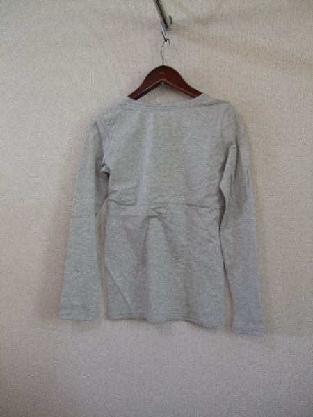 | 商品紹介 | シンプルなグレーの長袖カットソーです。 適度な襟の開き具合でインナーとして着回しのできるアイテムです。 《素材》 綿100% |