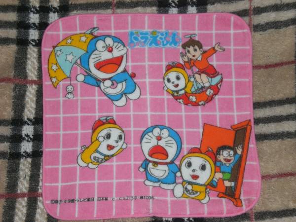 ☆商品説明☆ご覧いただきありがとうございます^^藤子不二雄ドラえもんキャラクターのハンドタオルです。日本製。レトロなドラえもん、ドラミちゃん、のび太くん、しずかちゃんの絵柄でと~ってもかわいいですよ^^ 大きさはタテ 約21.5cm、ヨコ 約21.5cmです。たいへん古いものですがコレクション用として大切に保管していましたので未使用でたいへんキレイな状態ですが家庭で保管していた物になりますのでご理解いただける方のご入札をお願い致します。 ☆発送方法☆ 定形外郵便、ゆうぱっく ☆コメント☆ ノークレーム、ノーリターンでお願いします。ご不明な点がございましたらお気軽にお問合わせ下さい。他にもドラえもんキャラクターグッズたくさん出品しております☆ 良かったらご覧下さいね*^^*