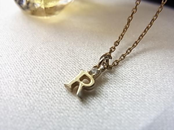 イニシャルデザイン R キュービックジルコニア1粒ネックレス◎