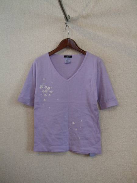 商品名 | nouerue(フランドル)紫プリント入Vネック半袖カットソー(USED)20915② |
