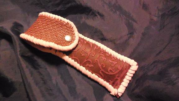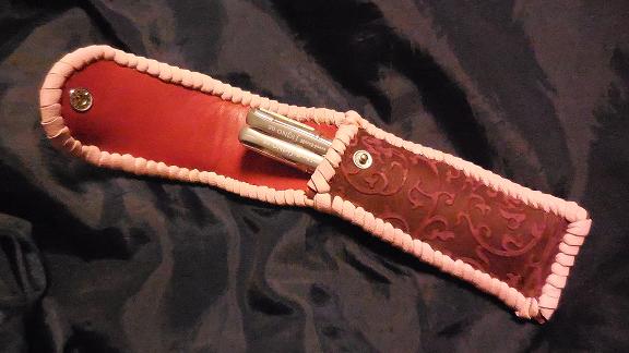 ケース周囲は、ピンクレザーでかがりをして、仕上げました。