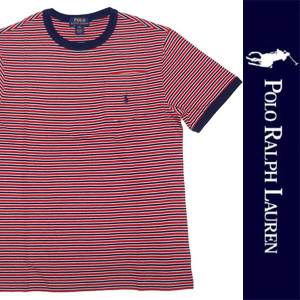 新品 POLO RALPH LAUREN BOYS S/S T-SHIRT ポロ ラルフローレン ボーイズ 半袖 Tシャツ レッド ネイビー ボーダー コットン XL 正規品 91D