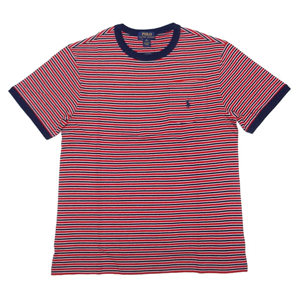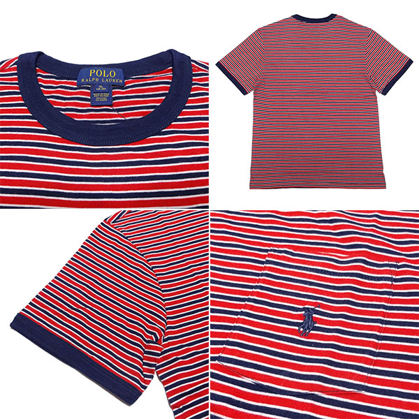 新品 POLO RALPH LAUREN BOYS S/S T-SHIRT ポロ ラルフローレン ボーイズ 半袖 Tシャツ レッド ネイビー ボーダー コットン L 正規品 91B