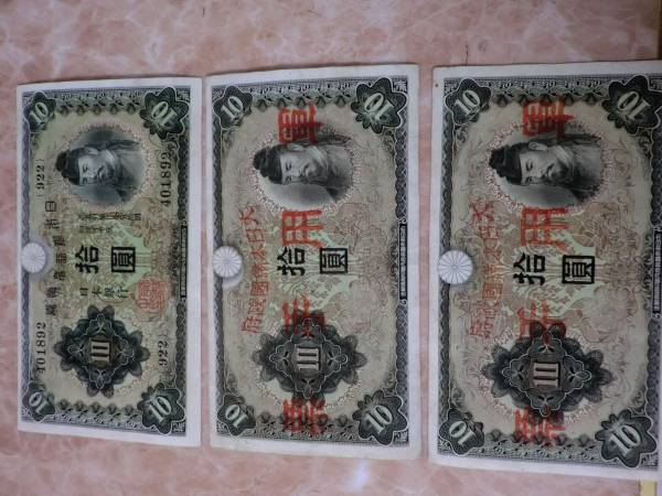 兌換券10円 1次10円・日華事変軍票 丙号10円を2枚の美品を3枚セットです。
