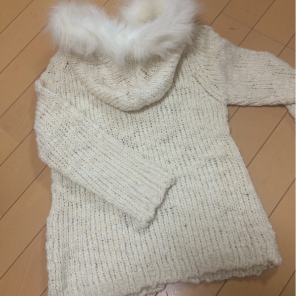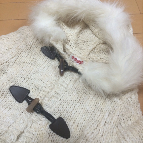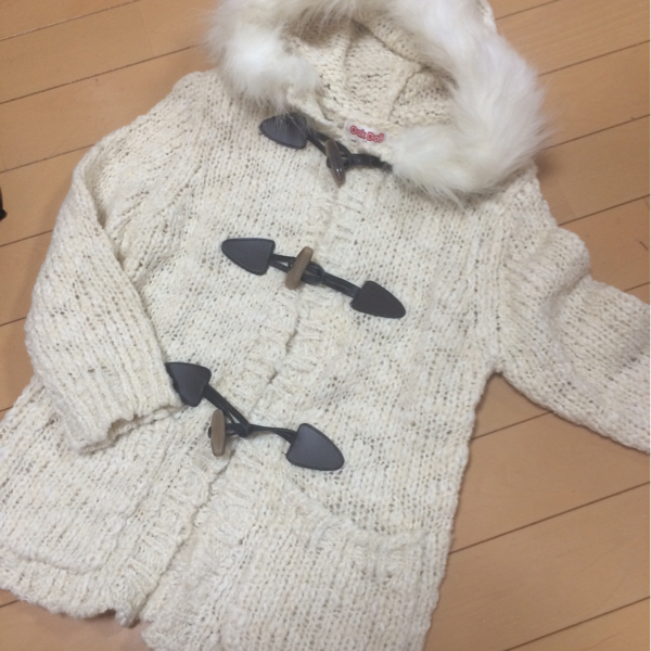 ◆フードのファーが可愛いダッフル型のニットカーディガン♪裏地がないのでコートではなくカーディガン仕様だと思います