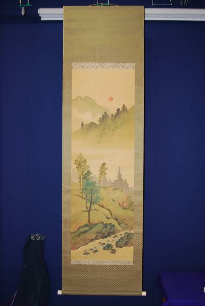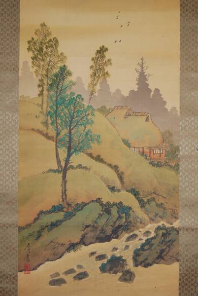 【参考】森廣陵 もり・こうりょう。(明治七・1874~大正十・1921)は名廉、本姓中島、前橋の南宗画家、霞巌の子。寺崎廣業の門人。  津島耕南(現代)は名隆、字得民、号香楠、醉月居士、白雲外史、壽山道人、萬竿葉堂主人。初め水戸の篠原香山に、後川村雨谷、瀧和亭、菅原白龍に学んだ。はじめ父・森霞巌に学び、後に寺崎広業に師事し、狩野派の画風を研究し、諸所の展覧会で十数回の受賞を重ねた。美術研精会会員、独立絵画会会員、大東絵画協会幹事。文展には「逍遙」を出品した。   山水人物図      【作品状態】 本紙は絹本肉筆です。 本紙は薄汚れ・多少の汚シミ・1ヶ所小キズ・巻シワがあります。 表装は多少の時代感あり、薄汚れがあります。     紙箱付    軸丈 縦 193㎝×幅 59㎝ 写真で状態をご判断の上、宜しくお願い致します。