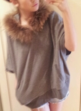 素材はレーヨン59%、綿38%、ポリウレタン3%です。ファーはチャイニーズラクーン記載されています。 色はグレーです。