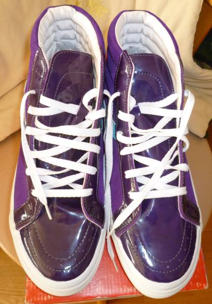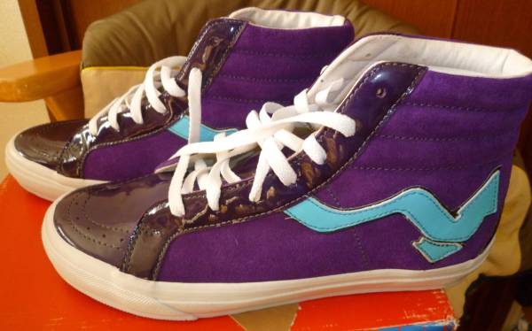 madfootが量産化される前のストリート系雑誌を賑わしていた頃作品になり、パープルのスエードとエナメルで切り返されており、サイドのロゴとソール、かかとのロゴが水色で統一され配色のバランスも最高なスニーカーになります。