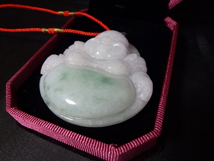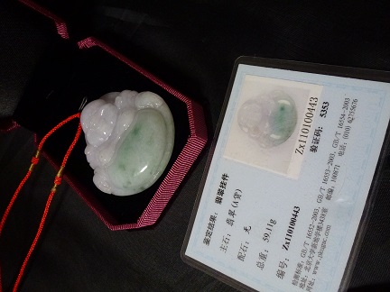 翡翠(A貨) 彫刻品 (掛件) 約59.11g 長さ:約5.5cm 鑑別書