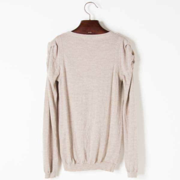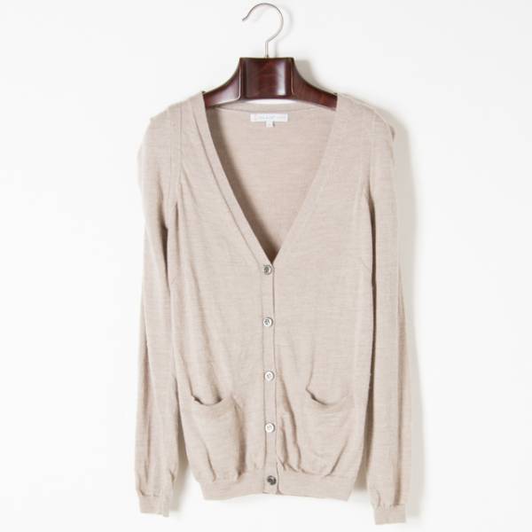 アンドジョーシスターのウール素材のニットカーディガンです。肩に独特なデザインが施され、シンプルながらもニュアンスのあるアイテムに仕上がっています。