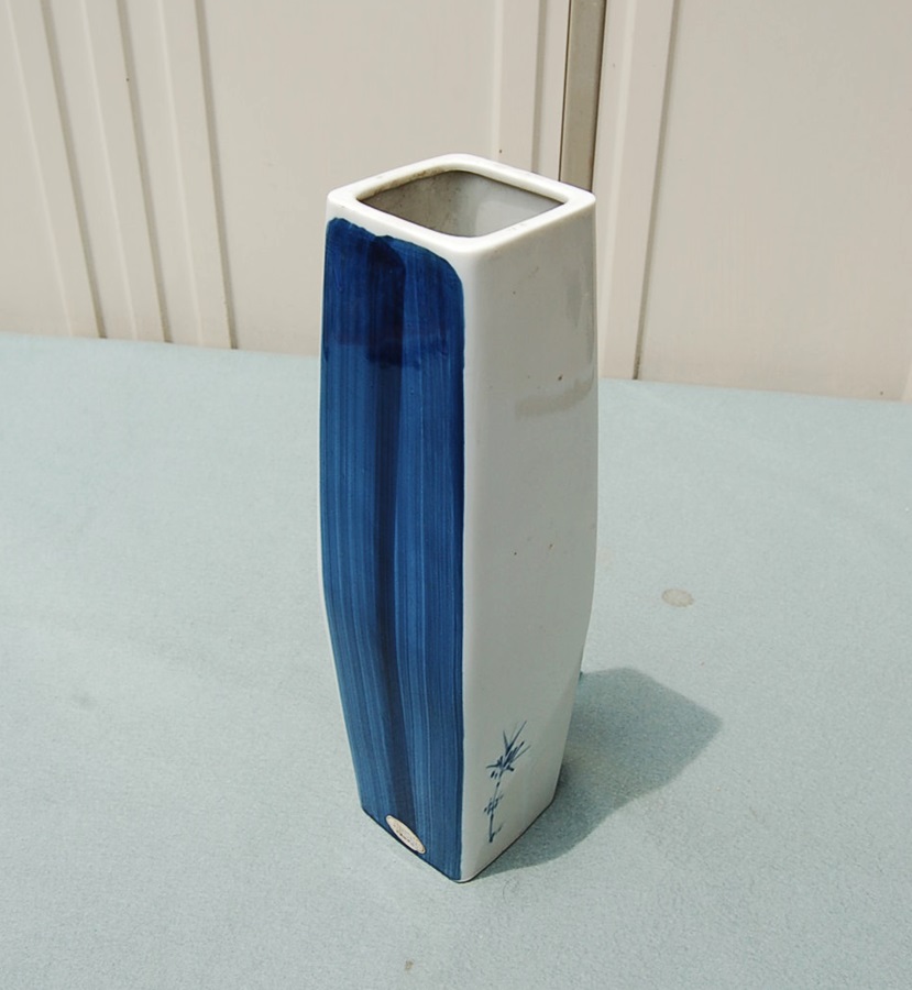 金鳳焼 花瓶 四角柱 染付・竹絵柄
