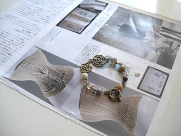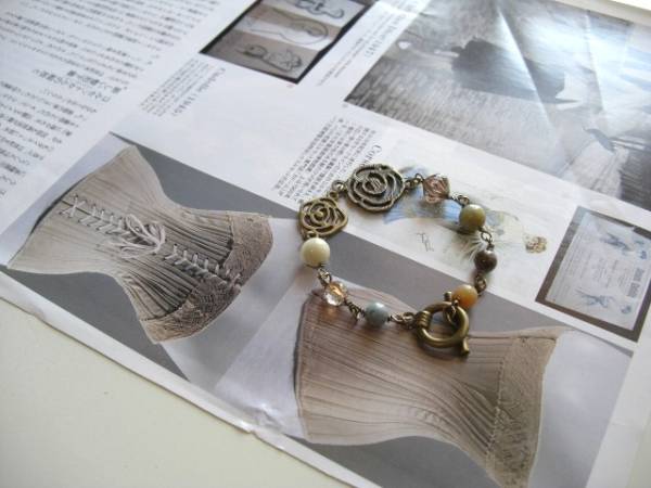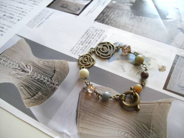 アンニュイ気分で・・シリーズです♪密やかな薔薇・・シックなアマゾナイトのブレスレットです♪ナチュラルなお色のアマゾナイトにチェコビーズや 薔薇の透かしチャームを合わせて可憐な表情です♪6ミリ、8ミリの丸玉のアマゾナイトはデザイン違いのチェコビーズや薔薇の透かしチャームを合わせました ♪長さは全長20センチ位です♪お揃いのネックレスも出品しています♪シンプルで飽きのこな いいつまで も着けられるデザインを考えて作り ました!ハンドメイドをご理解頂いてノークレーム、ノーリターンでお願いします