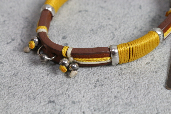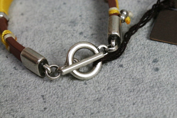 新品コムサメン イタリア製レザーブレスレット黄/茶定価2万2