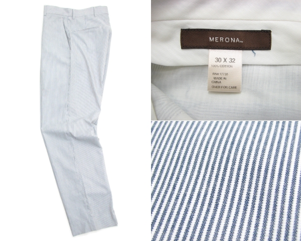 アメリカのカジュアルブランド、メローナのストライプスラックスです。これからの季節に丁度いい一枚です。