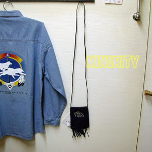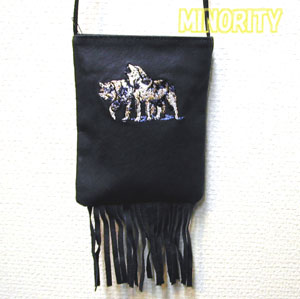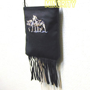 本革にウルフペアの刺繍を施した、フリンジバッグ(ポシェット)です。