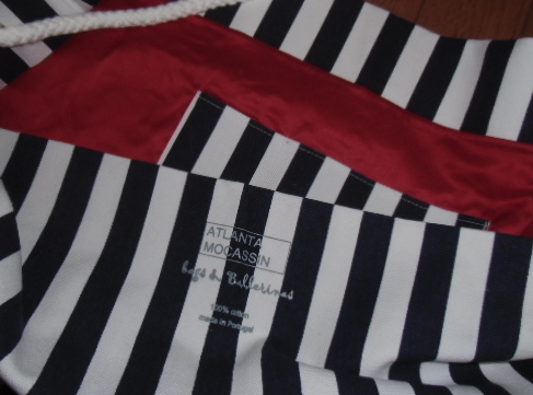 新品ナノユニバース購入!アトランタモカシン/トートバッグ マリン柄 ブルー×ホワイト ストライプ