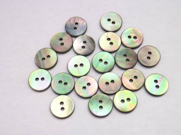 | ★商品説明★ | 非常に使いやすい まっ平らな型の2穴の黒蝶貝ボタンです。 珍しいマットな艶消しにしました。 艶消しにしたことで、高級感も増し、貝なのに温かさも出ています。 9mm. 10mm. 11.5mm. 13mm. 15mm. 18mm. 20mm のサイズがあります。 「貝 ボタン まっ平ら」 で検索してください。 洋服のボタン変え、趣味の手芸にと、大活躍な形です。 黒蝶貝は、古くから工芸、装飾に利用されてきた伝統的な素材です。 貝殻内側の虹色光沢の部分(真珠層)を切り取り、また削りだして使います。 木製品の象嵌(ぞうがん)細工や漆の螺鈿(らでん)細工のほか、 高級腕時計の文字盤や、指輪、ネックレス、カフスなど装身具などにも使われます。 とても上品な黒銀色ですが、見る角度や光の加減で微妙に色が変化します。 天然素材ならではの奥深い味わいを、ぜひお楽しみください。 | ||