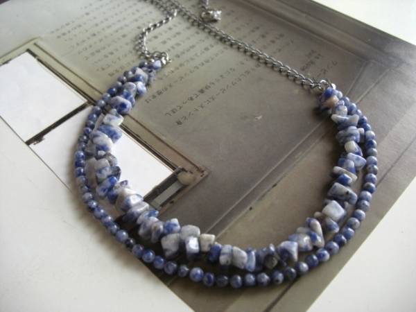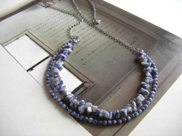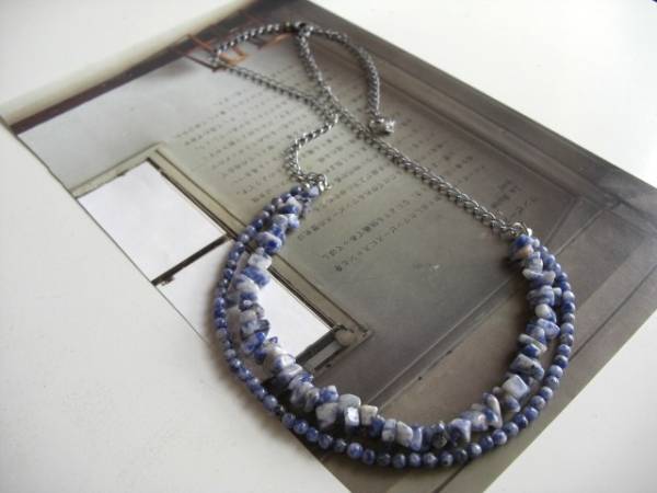 モードな秋色・・シリーズです♪ラピスに恋して・・キュートなデニムラピスの2連のネックレスです♪丸玉やさざれなどデザイン違いのラピスは深い藍色やブルーグレーや群青色が合わさってアートな表情です♪丸玉は4ミリ、さざれは5ミリから7ミリ位です♪長さは全長73センチ位で調節自由です♪チョーカー風にされても素敵です♪お揃いのブレスレットも出品しています♪シンプルで飽きのこないいつまでも着けられるデザインを考えて作りました!ハンドメイドをご理解頂いてノークレーム、ノーリターンでお願いします