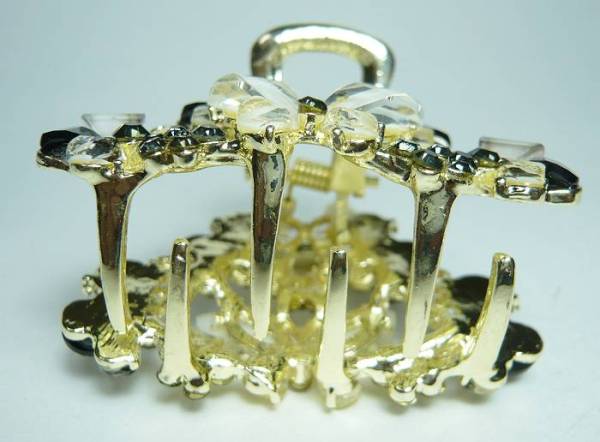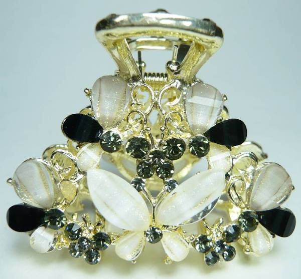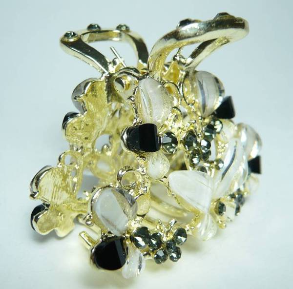 ラインストーン 花 蝶 ヘアクリップ 黒
