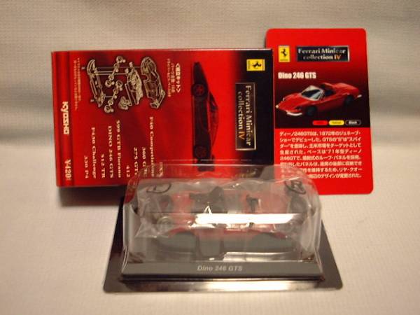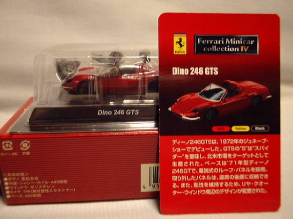 2007サークルK・サンクス限定 KYOSHO/京商 1:64スケール フェラーリミニカーシリーズⅣ Ferrari DINO 246 GTS<赤>です。組み立てカード付。発売当時、新品で購入後、暗所にて保管してました。透明ケース未開封・未組立ですが、量産品の為塗装ムラ・チップ等はご了承願います。箱下開けですが多少破れ等あります。梱包養生用とお考えください。現状ノ-クレームノーリターンでお願いします。