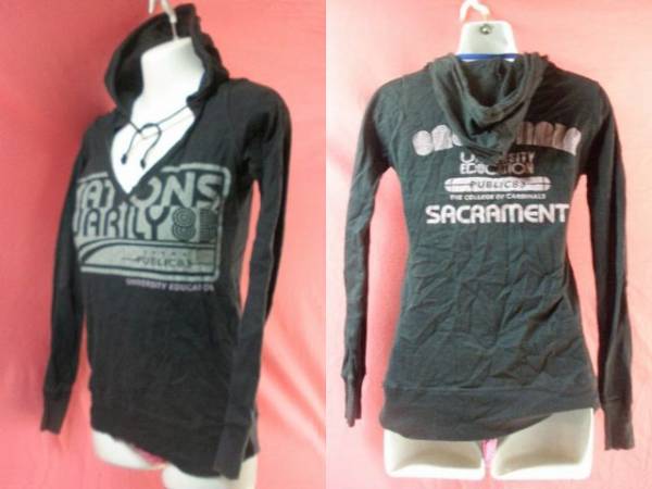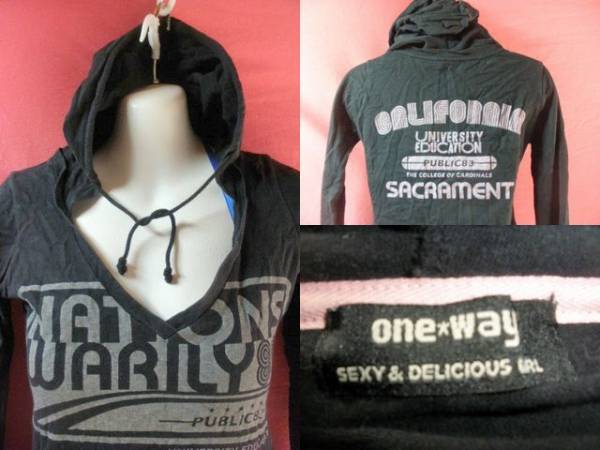 USED one way フード付き薄手トレーナー サイズM 黒色