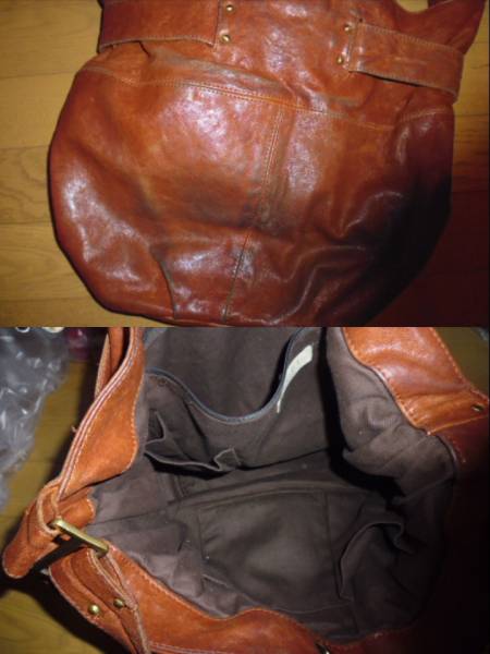 he;pt ヘプト 本革レザーバッグです。 使用に支障がない部分のステッチのほつれ多少(持ち手の両サイドでは無く中心のステッチ)、革特有のスレ・スレ汚れ、内側に汚れ多少、破損・破れなどは無く問題無く使用いただけます。 サイズは約・縦30cm横30cmマチ25cm、持ち手は調整不可で約50cmです。 |