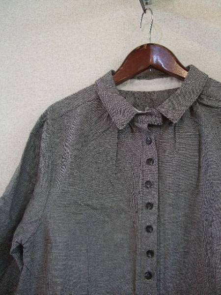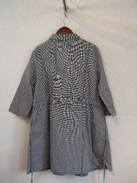 | 商品紹介 | 千鳥格子柄のシャツワンピースです。 襟元に軽くギャザーが入っています。 襟と袖裏に白いレースが付いているので、袖を折り返すと 違う雰囲気で着ていただけます。 しっかりしたコットン素材でコートワンピースとしても使えます。 ウエストは腰紐が付いていて、一番下のボタンから裾まで32㎝ほど開いています。 1、3枚目の写真が柄のせいかうまく写りませんでした。実際の模様は2枚目のような感じなので、ご確認ください。 《素材》 綿100% |