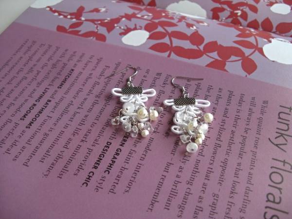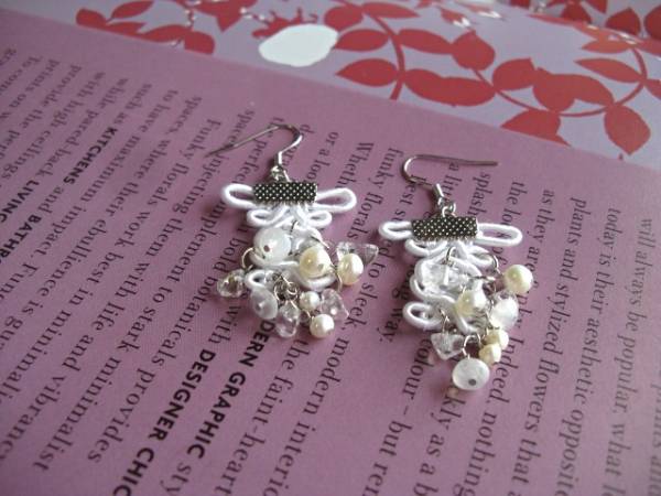 ずっとお気に入り・・シリーズです♪6月の花嫁・・清楚な白のブレードに水晶やムーンストーンや淡水パールを合わせて華やかなピアスです♪幅が15ミリから25ミリ位のクラシックなデザインの白のブレードに4ミリから7ミリ位までの淡水パールや水晶やムーンストーンを繋ぎました♪長さは6.5センチ位です♪イヤリングにも変更出来ます♪お揃いのネックレスやブレスレットも出品しています♪シンプルで飽きのこないいつまでも着けられるデザインを考えて作りました!ハンドメイドをご理解頂いてノークレーム、ノーリターンでお願いします