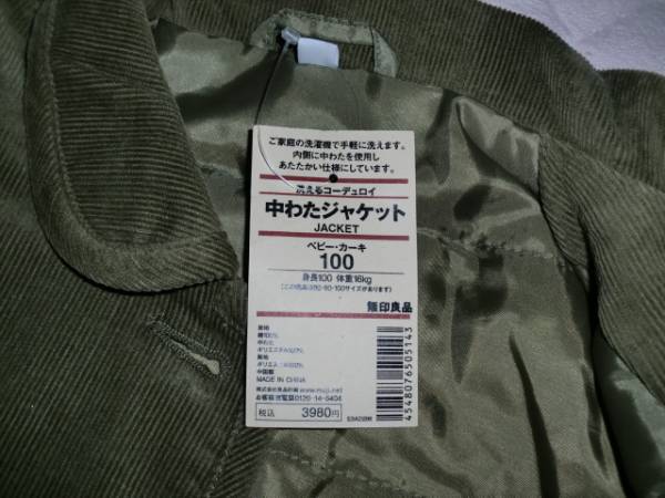 無印良品☆中わたジャケット☆ベビー・カーキ☆サイズ100☆洗えるコーデュロイー☆未使用
