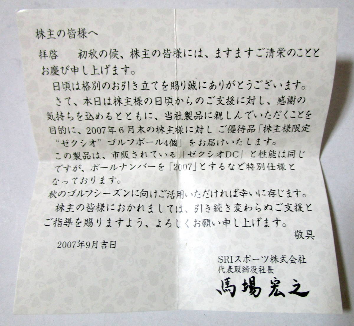 未使用保管品 SRIスポーツ株式会社 株主限定 非売品 DUNLOP XXIO ゼクシオ ゴルフボール 4個セット 2007 企業ノベルティ/日本製
