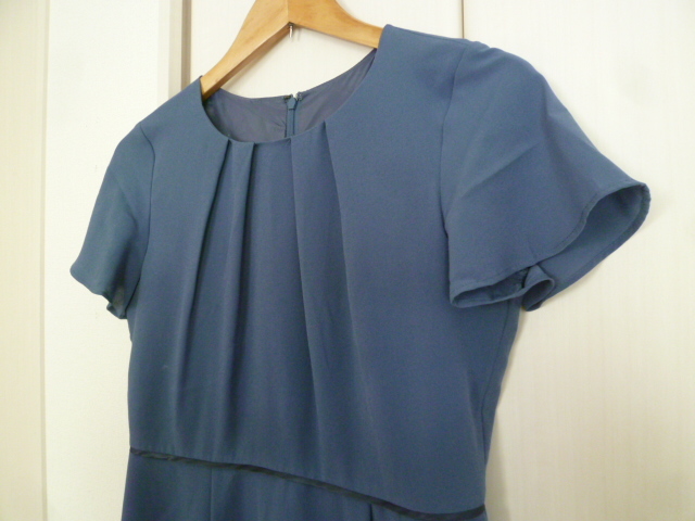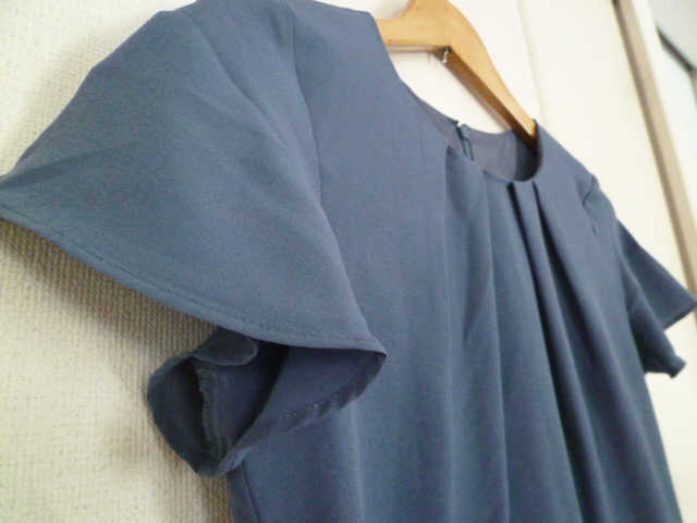 BEAMS MART/ビームス△くすんだ水色系フレア袖フリル袖フォーマルワンピース0/半袖膝丈結婚式にも△OP119