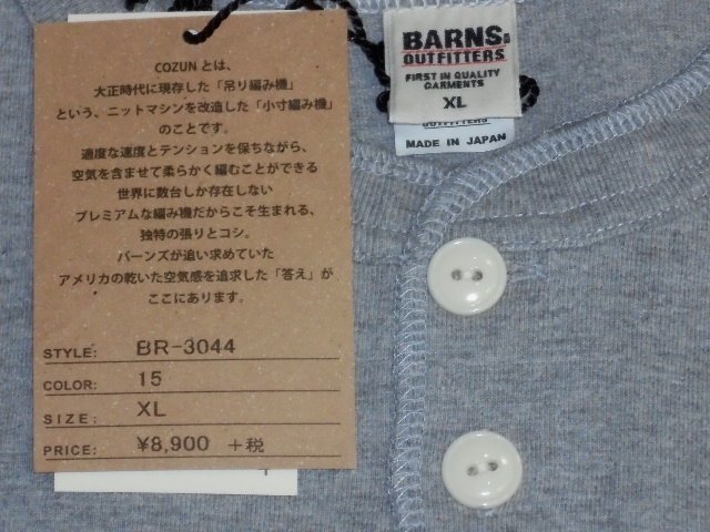 BARNS バーンズ BR3044 15 グレー XL ヘンリー ロンT 長袖 Tシャツ