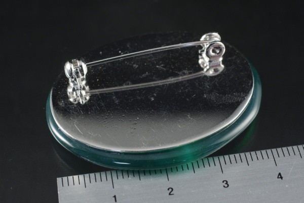 30×40mmのカボション型の瑪瑙クリソを金具で固定してあります。