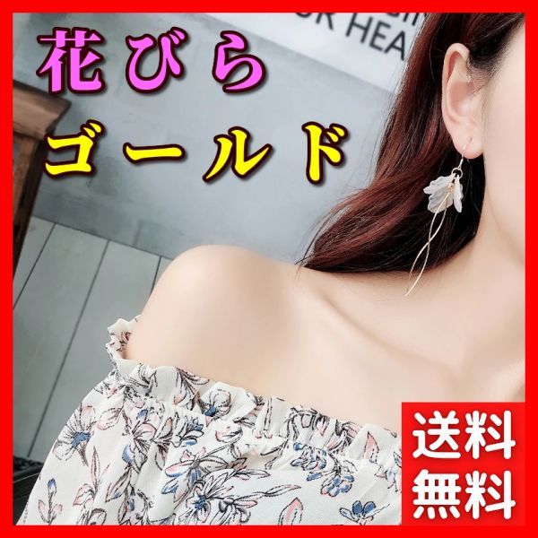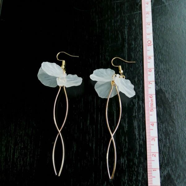 ピアス 花びら s字 金属ワイヤー ゴールド 韓国 かわいい 透明 アクリル 女性 2021 新トレンド ファッション ジュエリー #C65-3