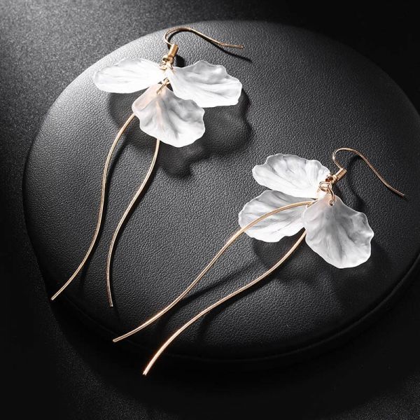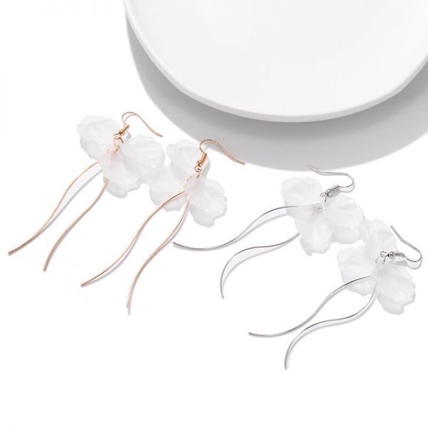 ピアス 花びら s字 金属ワイヤー ゴールド 韓国 かわいい 透明 アクリル 女性 2021 新トレンド ファッション ジュエリー brincos
