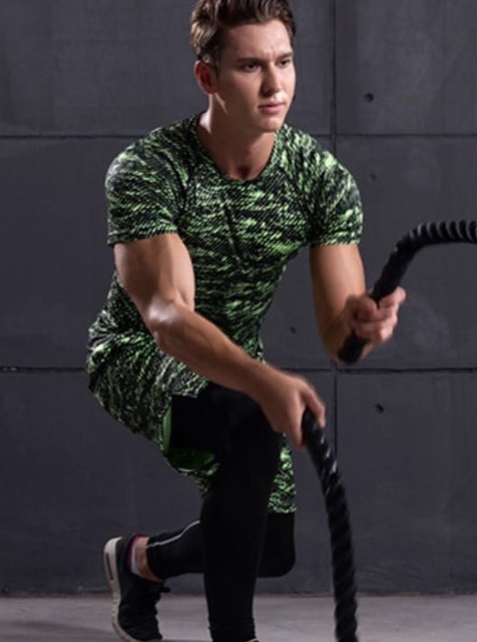吸汗速乾着圧インナー半袖+タイツ+パンツ 3点セット♪黒×緑 M