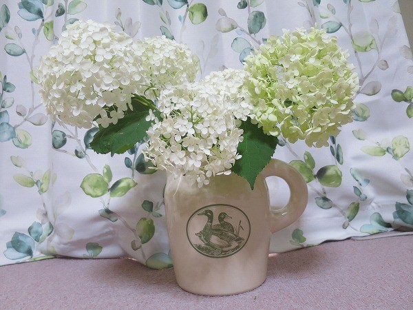 画像で試しにアジサイを飾ってみましたが、花瓶だけの出品です。