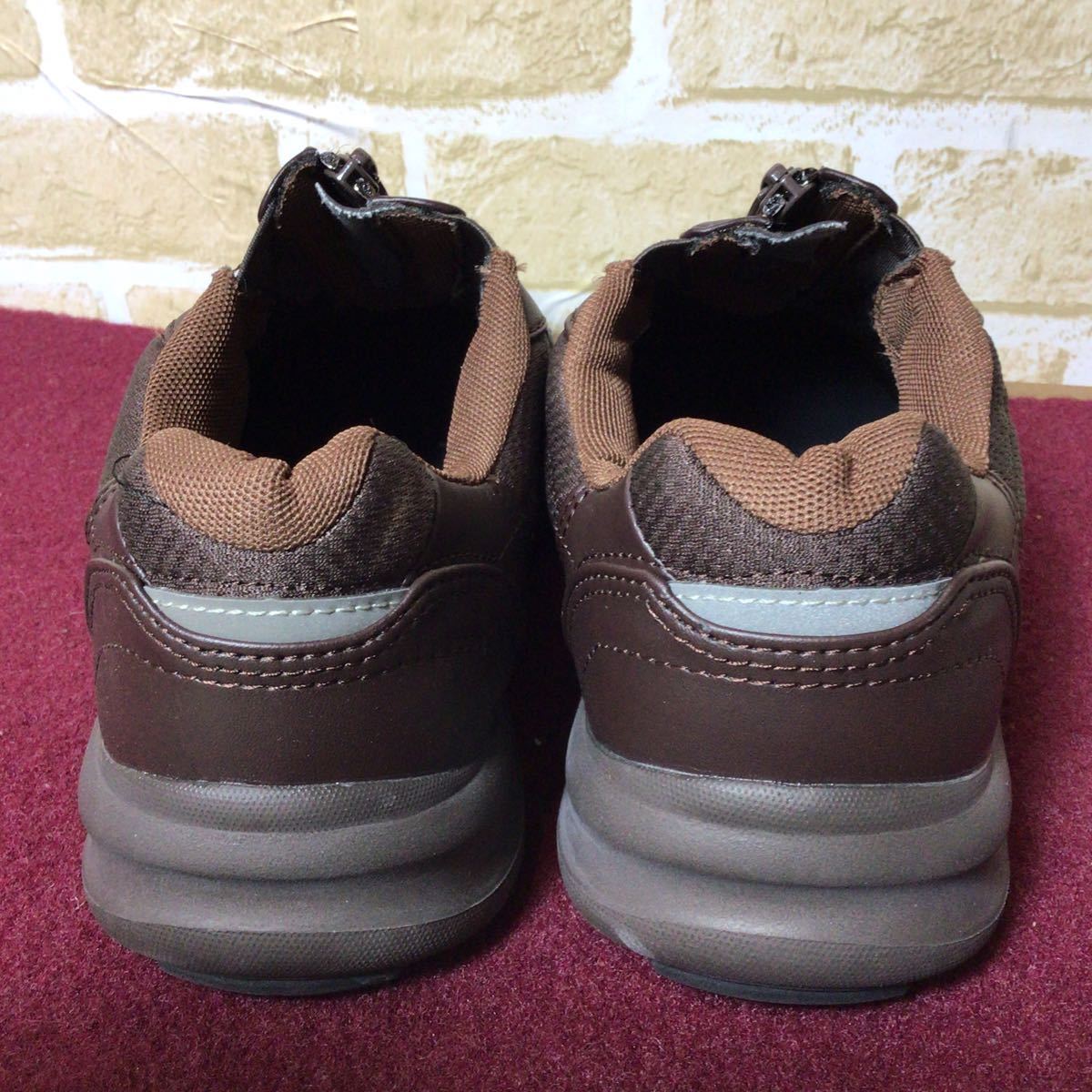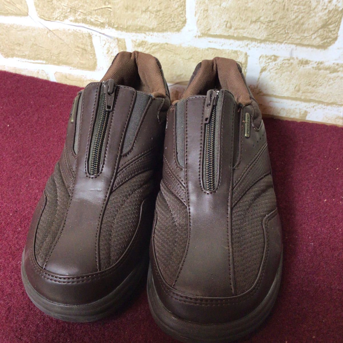 履き口にジップがついており、とても履きやすい一足かと思います。幅広で、軽量なので、疲れにくいのではないかと思います。中敷にもクッション性があります。