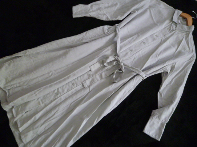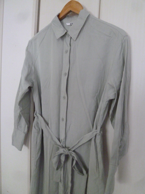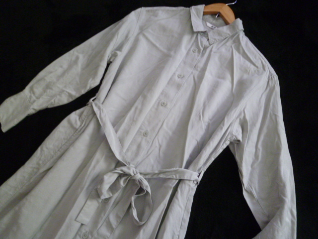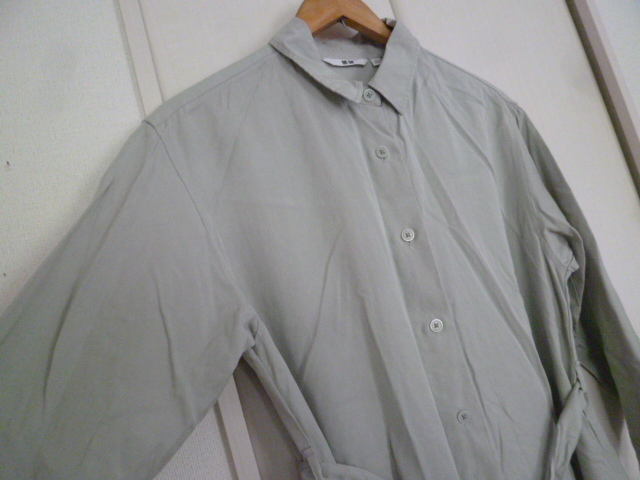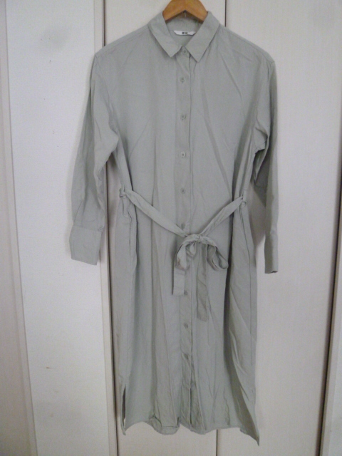 UNIQLO/ユニクロ△グレー系ウエストリボンロングシャツワンピースS/定番デザイン△OP123