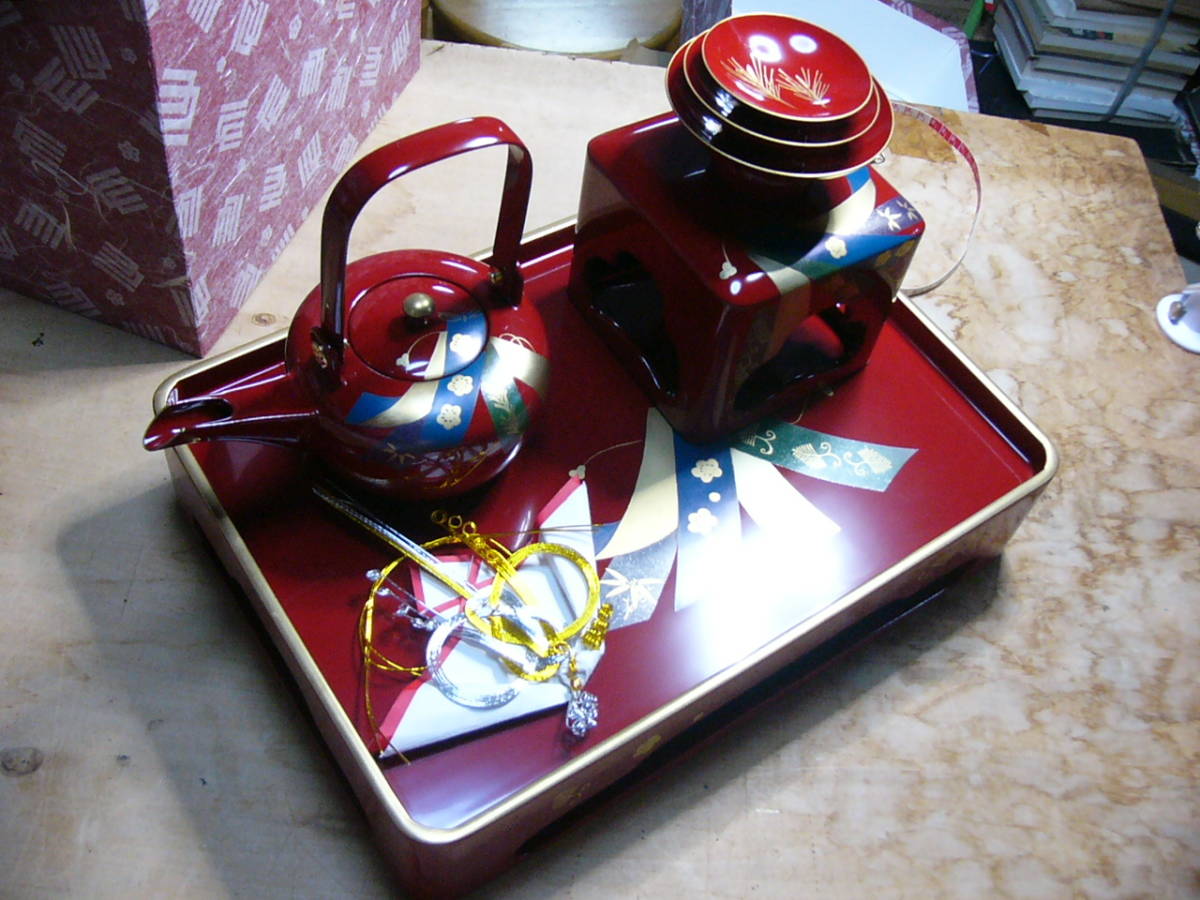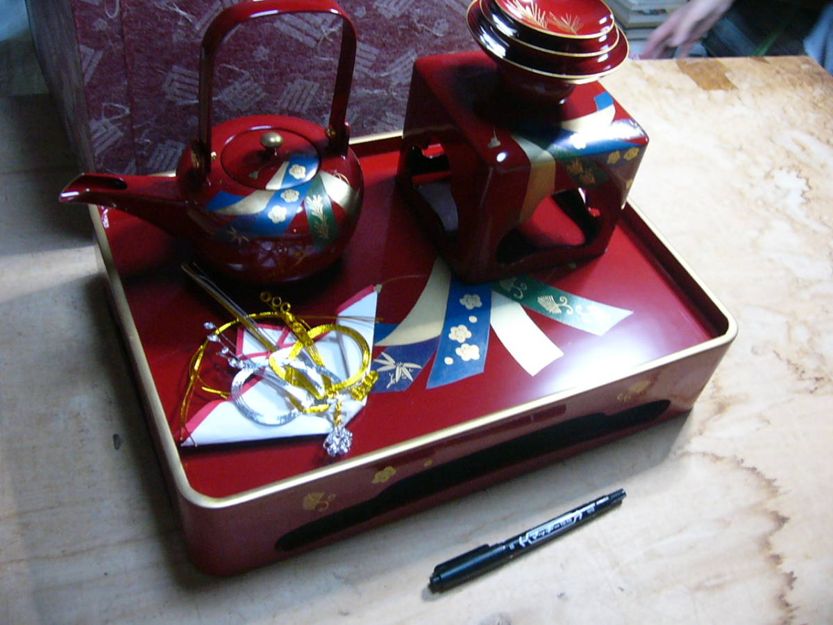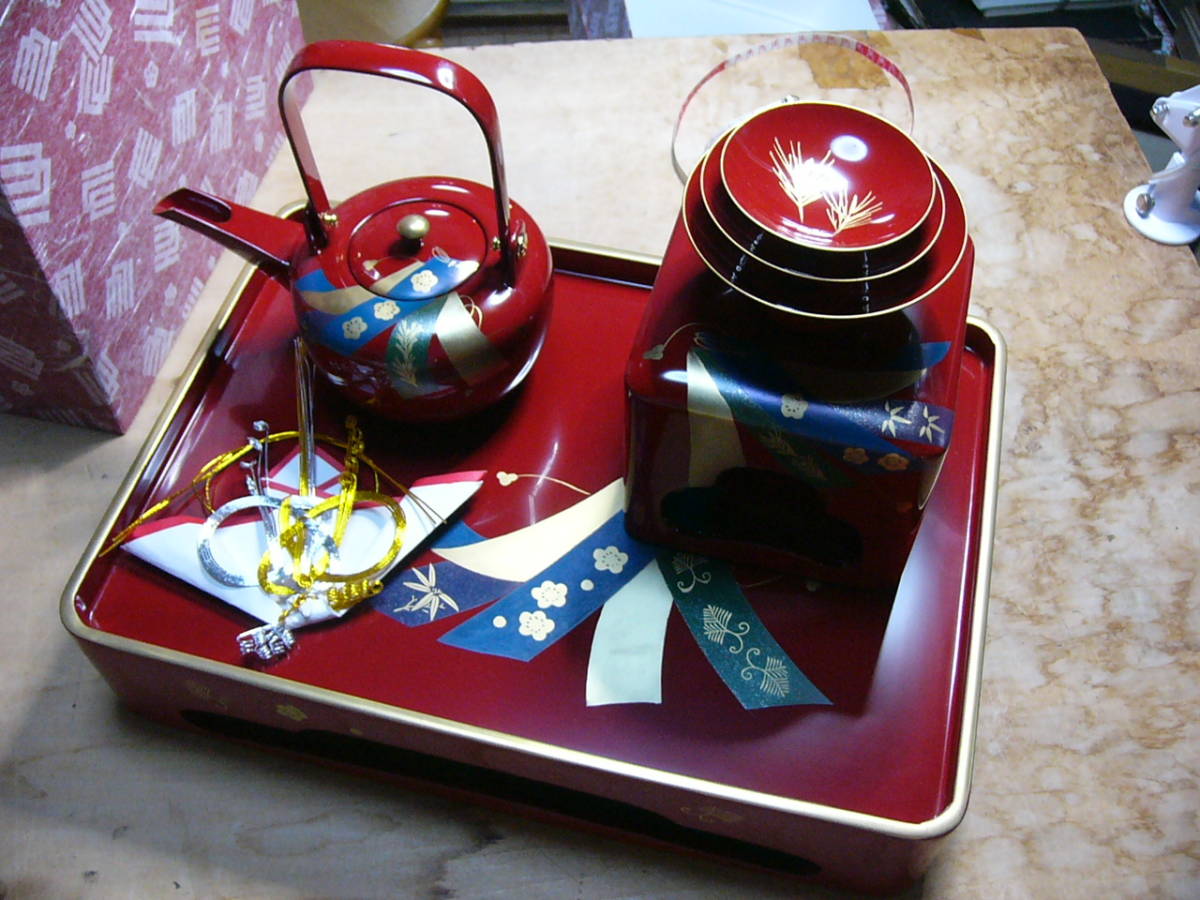 会津塗 屠蘇器セット 平安型 四ツ揃 朱色