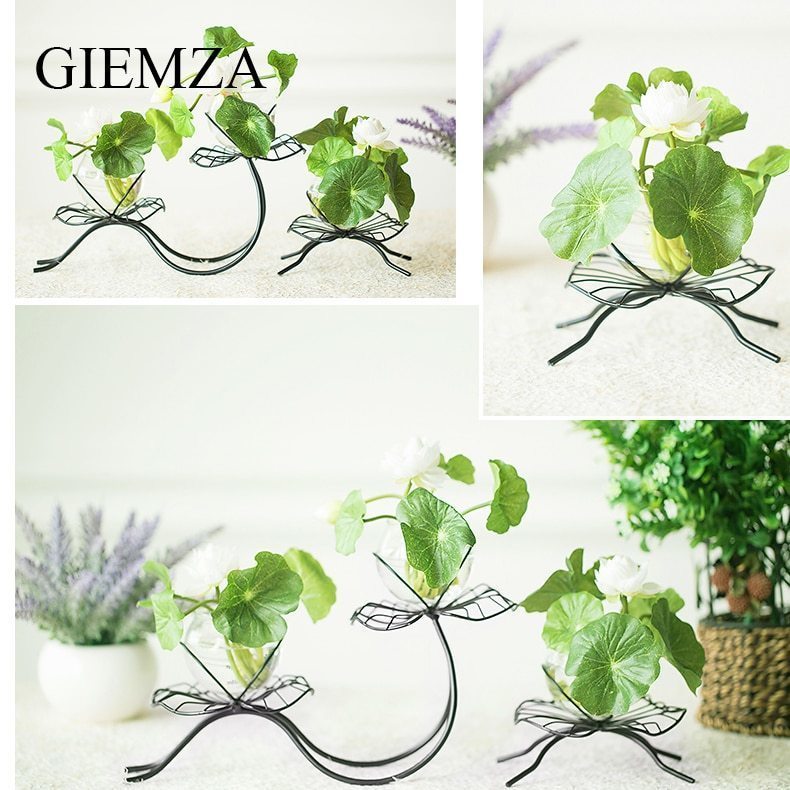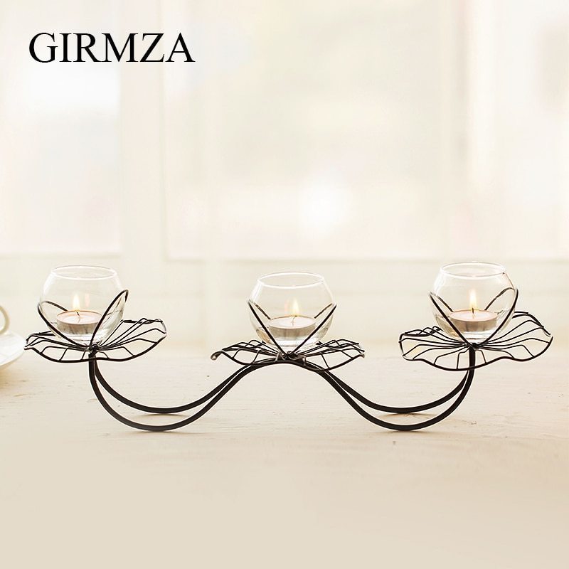 キャンドルスタンド 蓮の葉モチーフの鉄製スタンド モダン ガラス製 3連
