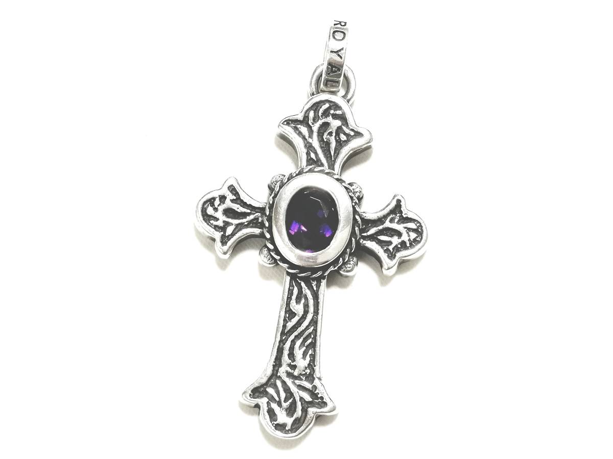 ☆美品 定価¥106,700 本物 正規品 ロイヤルオーダー Carved Cross w/ CZ カーブド クロス パープル ペンダントトップ シルバー925☆