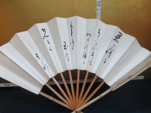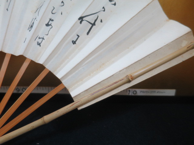 「時代の有る扇子E-171-65」 マニアより出ました。 明治~大正時代 扇骨10本 開きサイズ46cm長さ27.5cm 新品では在りません。時代の有るお品ですのでご理解のある方の 入札を望みます。 |