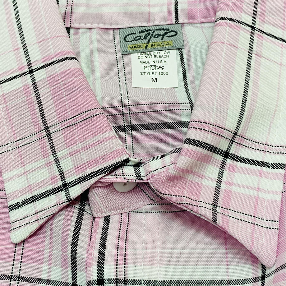 アメリカ製 【S】 CALTOP キャルトップ 半袖 オーバーサイズ チェックシャツ ボタンアップ ピンク PINK チカーノ オールドスクール