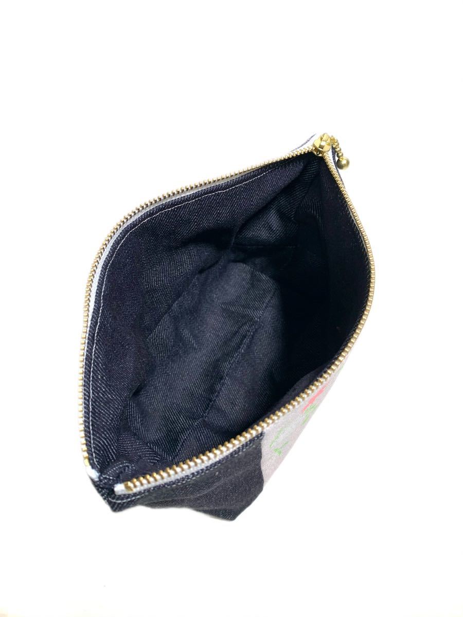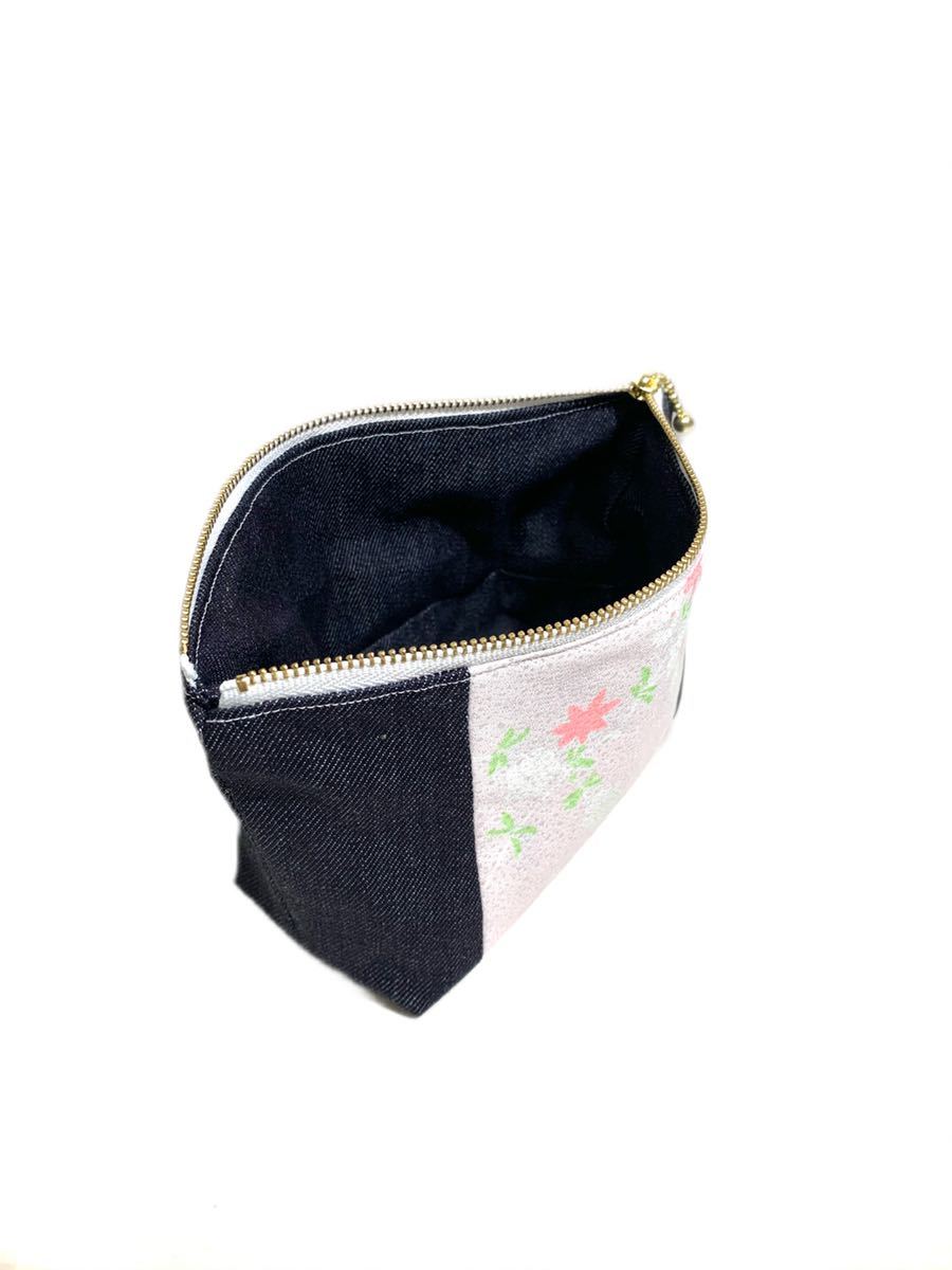 【現品1点限り】HAJIME AYUMU 花柄着物生地&高級児島デニム デザインポーチ